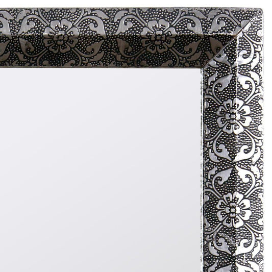 Chaandhi Kar Black & Silver Embossed Frame Rectangular Mirror