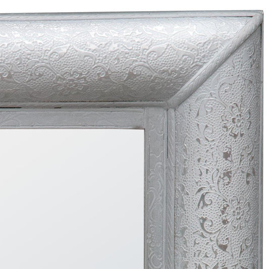 Chaandhi Kar White Silver Embossed Rectangular Wall Mirror