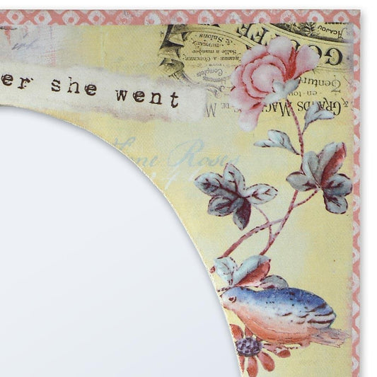Pink Vintage Venetian Rectangular Etched Glass Mirror with Crown