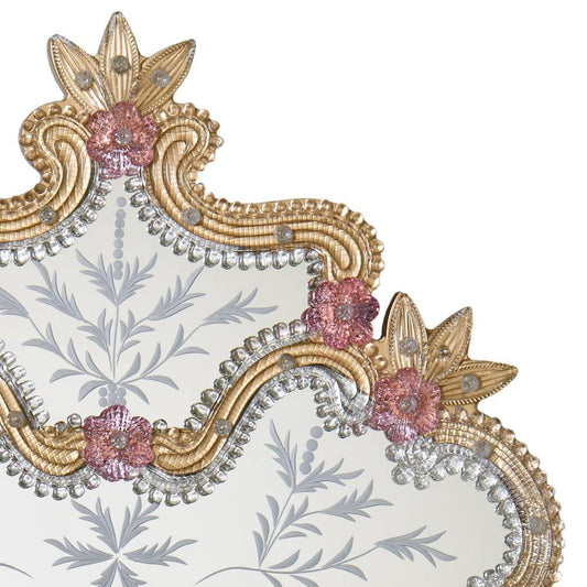 Vintage Venezia Murano Gold and Pink Petal Mirror
