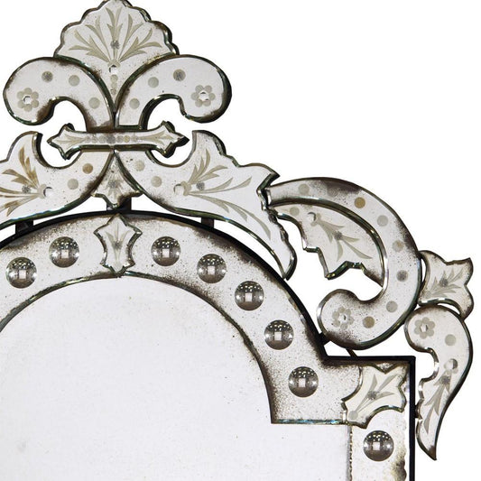 Vintage Venetian Portrait Oval Mirror with Crown and Etching
