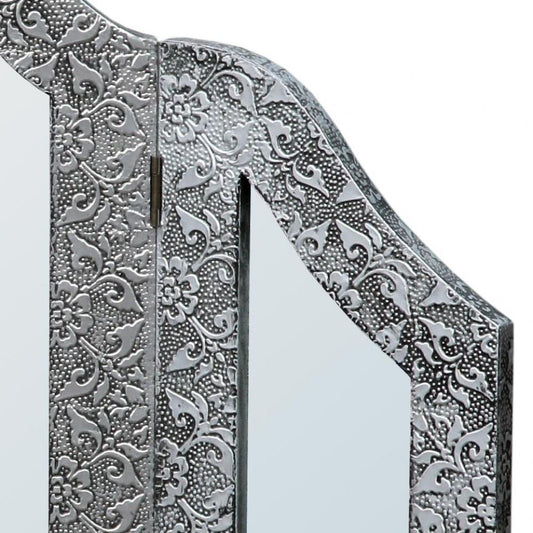 Chaandhi Kar Black Silver Embossed Three Panel Table Mirror