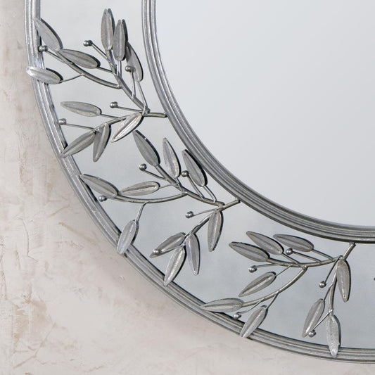 Modern Round Silver Floral Metal Framed Wall Mirror