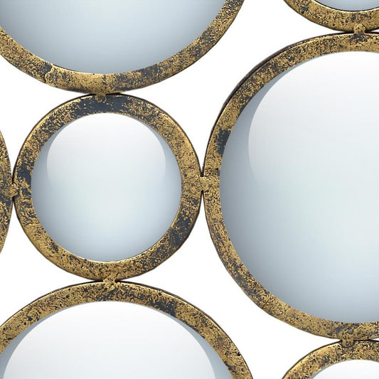Antique Gold Metal Framed Concentric Circle Bubble Wall Mirror